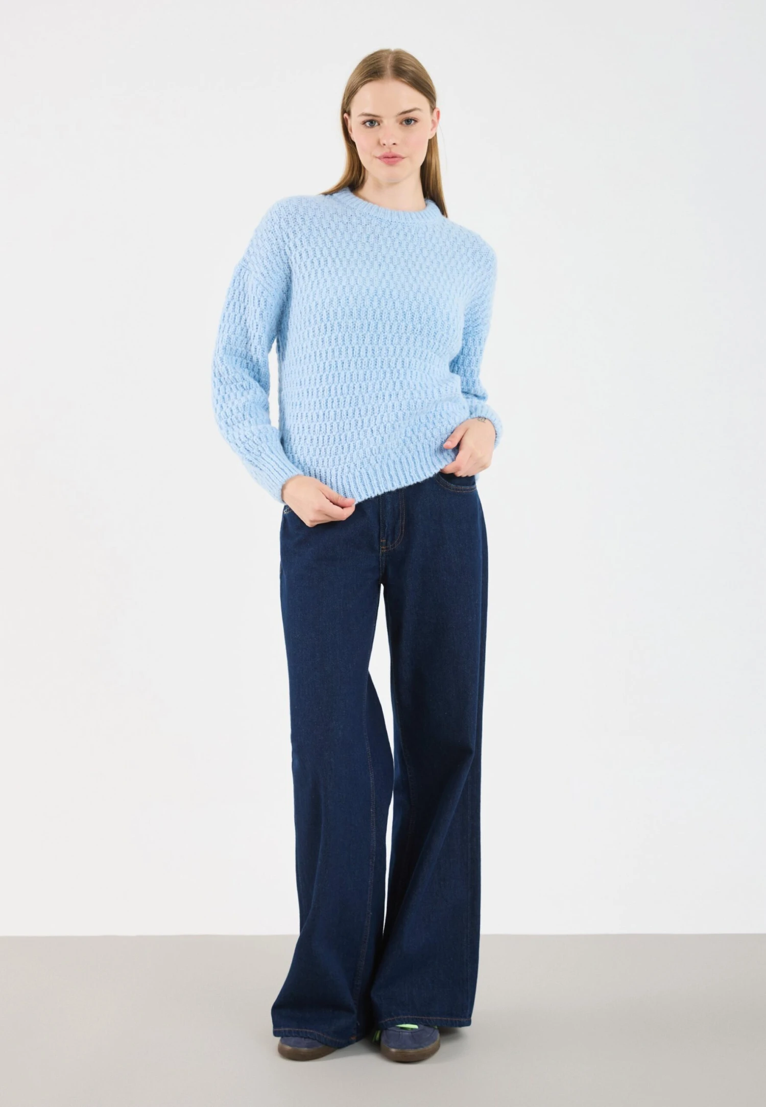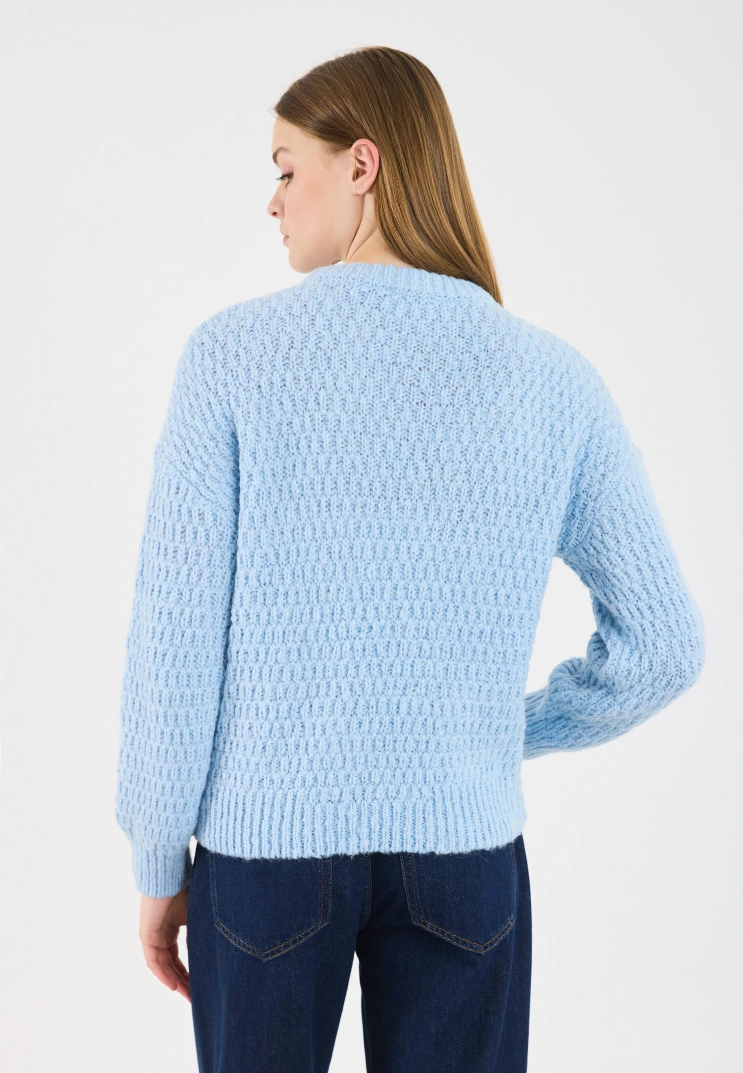 - Neckline: Crew neck